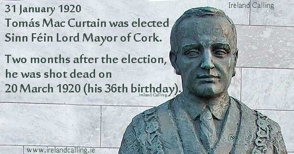 MacCurtain, was born on 20 March 1884, and was, therefore, shot dead on his 36th birthday. Of more consequence was that the assassination took place in front of his wife and one of his sons. His background was similar to that of many other republican figures of the early 20th century. He was a member of the Gaelic League and a founding member of the Irish Volunteers, siding with the anti-war element when the organisation split in 1914.