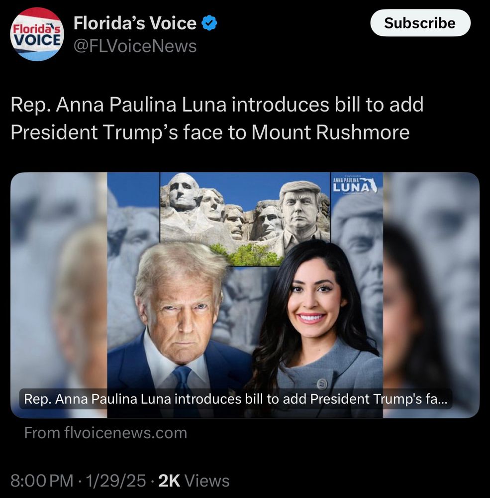 So, it appears that Rep. Anna Paulina Luna (surely there must be room for a MAGA in there somewhere?) has introduced a bill to add Donald Trump’s face to Mount Rushmore. What a spiffing idea. And what a shame John Gutzon de la Mothe Borglum died in 1941 and won’t be around to finish the job he started in 1927. He would have wanted to be there so much.